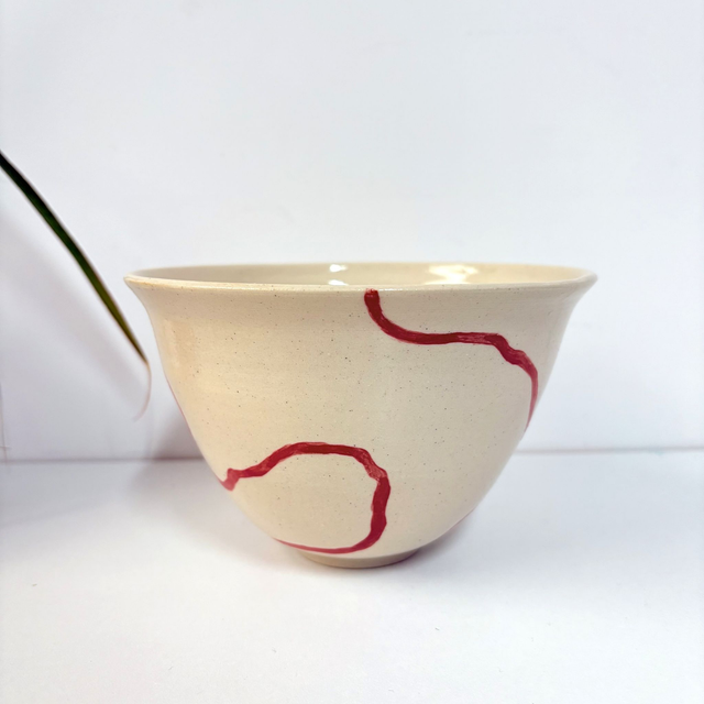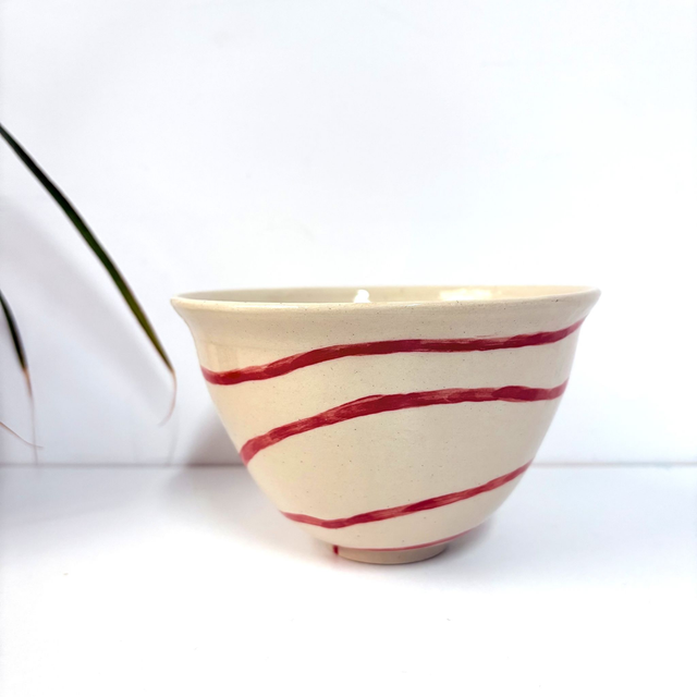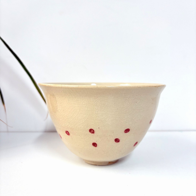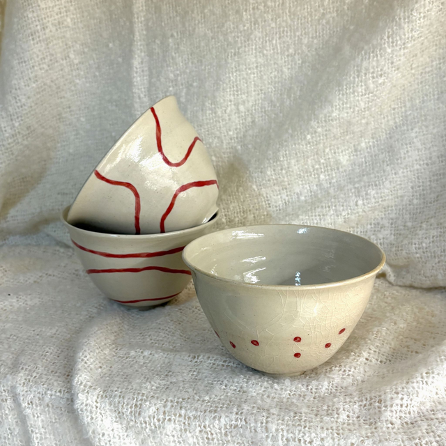Bols en grès peints à la main recouverts d'un émail transparent. Seul le bol à pois (n°1) est recouvert d'un émail transparent craquelé !