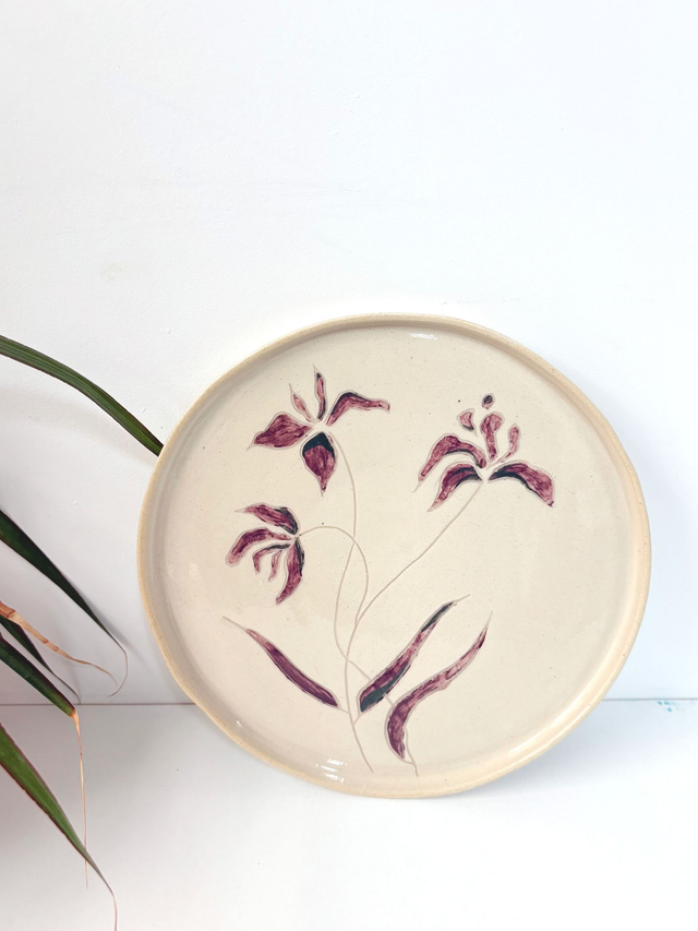 Assiette unique gravée et peinte.